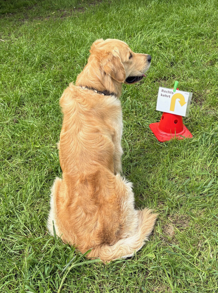Das Ergebnis: Ein Parcours mit verschiedenen Stationen, an denen du mit deinem Hund Aufgaben wie „Sitz“, „Platz“, „Steh“, Richtungswechsel oder Slalom absolvierst. Und das Beste: Während des Laufs darfst du deinen Hund loben, motivieren und mit Hör- oder Sichtzeichen unterstützen – echte Teamarbeit ist gefragt!